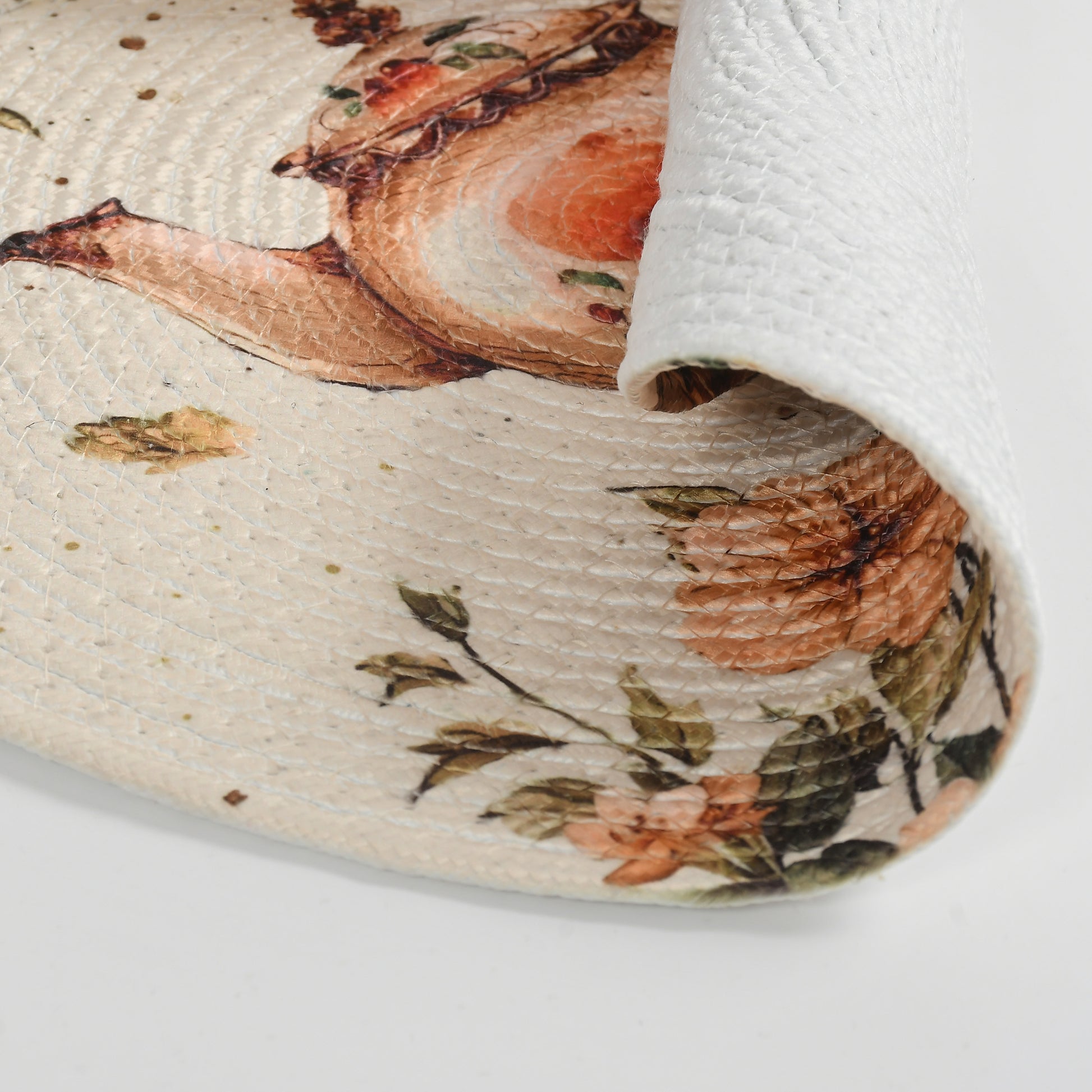 Finish: Smooth printed top with braided base